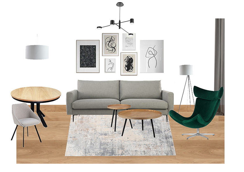 • przygotowanie koncepcji układu funkcjonalnego wybranych pomieszczeń: salonu, kuchni, przedpokoju, łazienki oraz toalety według preferencji klientów