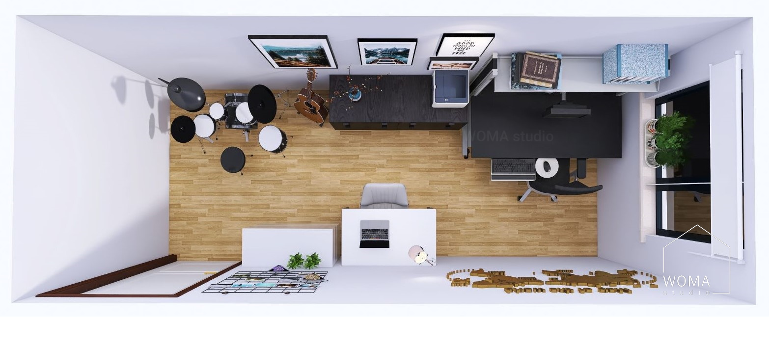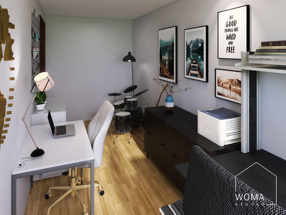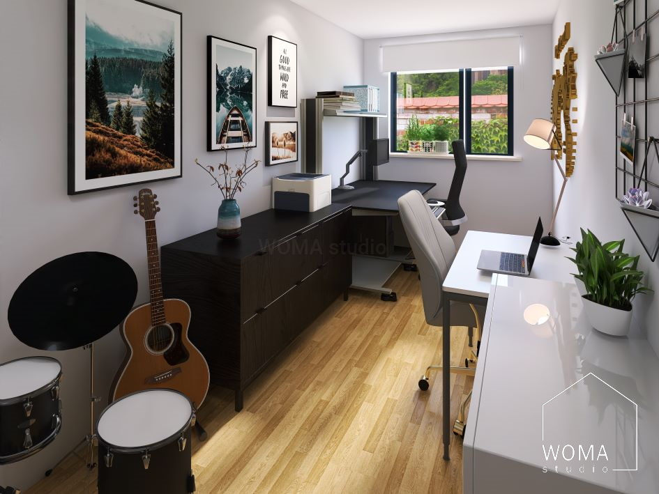 - połączenie funkcji domowego biura z pokojem muzycznym